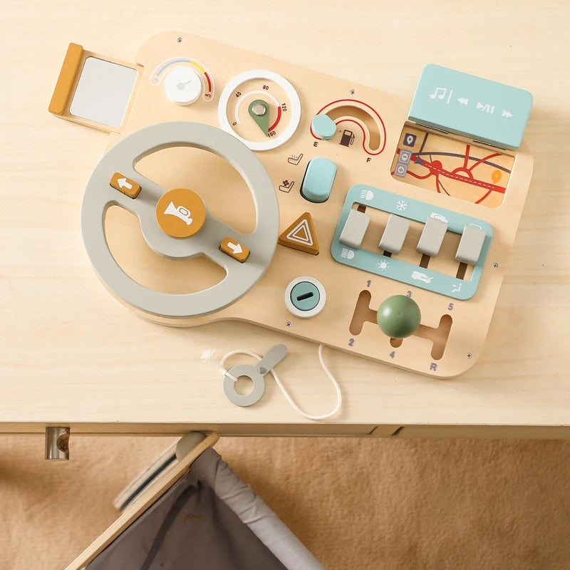 Children's Montessori Wooden Car Steering Wheel Activity Busyboard