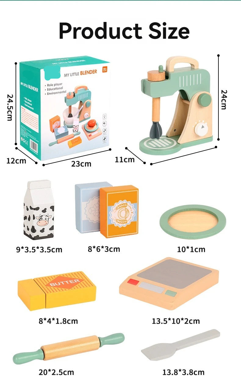 Whip up hours of imaginative fun with this beautifully crafted wooden baking station. Featuring a soft blue stand mixer with realistic rotating action, it comes complete with wooden egg, milk, flour, rolling pin, and scales ā everything your little baker needs to get mixing!